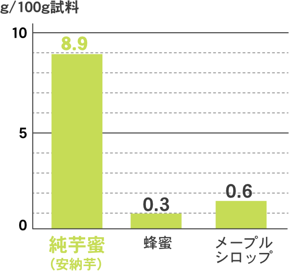 あめんどろ純芋蜜の食物繊維量は、蜂蜜やメープルシロップの約13~30倍。地元では、昔から便通によい蜜として知られてきました。